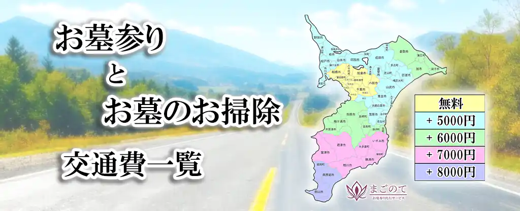 交通費無料エリア外のお墓参り代行サービスにつきましては、基本料19,800円と別途交通費(5,000円~8,000円)をご負担いただきます。